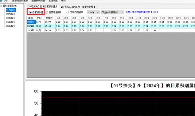4、测量数据:剂量率、日累积剂量、月累积剂量、年累积剂量、总累积剂量、日平均剂量率、月平均剂量率、年平均剂量率、总平均剂量率